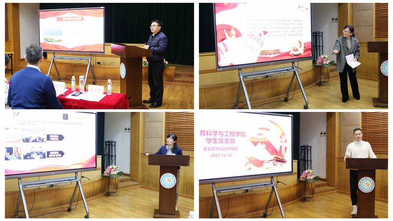 会前,学院党委下发了《关于开展2021年度党支部书记抓基层党建工作述职评议考核工作的通知》,要求党支部书记对照贯彻党支部工作条例、党员教育管理工作条例等文件精神,聚焦支部党建,突出工作重点,对党员教育管理监督服务、党的组织生活、党支部议事决策机制等是否达到规范性要求,以及落实上级党组织决定、联系服务师生等情况进行述职。参加述职评议考核的所有党支部书记均提交了书面述职报告。