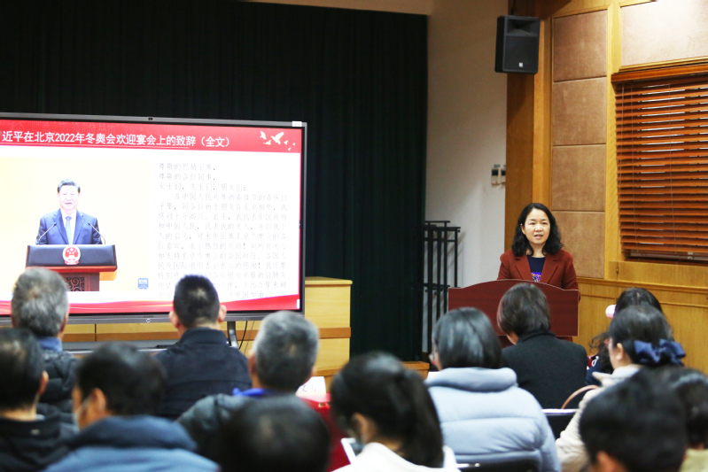 会上,徐文方带领全体教职工全文学习了习近平总书记在北京2022年冬奥会欢迎宴会上的致辞和习近平总书记给中国冰雪健儿的回信。徐文方带领大家从“牢记奥林匹克运动初心,共同维护世界和平”“弘扬奥林匹克运动精神,团结应对国际社会共同挑战”“践行奥林匹克运动宗旨,持续推动人类进步事业”三个方面学习了习近平的奥运观,深刻阐释了北京冬奥会的特殊意义和冬奥会中展现出来的中国人民的大智慧、大胸怀;并通过习近平总书记给中国冰雪健儿的回信,传达了习近平总书记对运动员、青少年和所有追梦者的鼓励和嘱托。教师代表分享了对奥运精神的理解和自身的学习体会。纷纷表示,要弘扬奥运精神,团结友爱,努力拼搏,不断超越自我,战胜自我,努力做“四有”好老师,为健康中国、体育强国事业贡献力量。