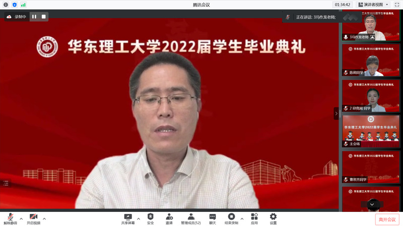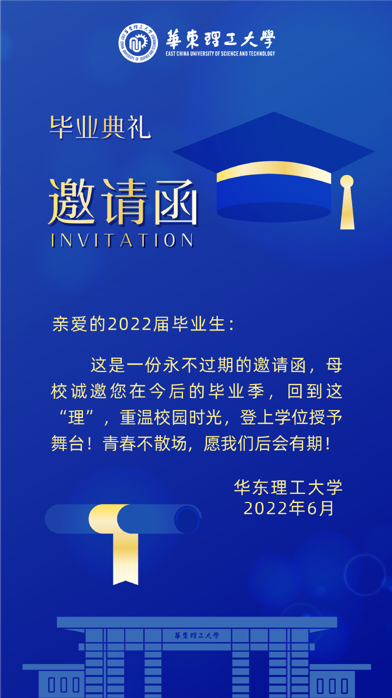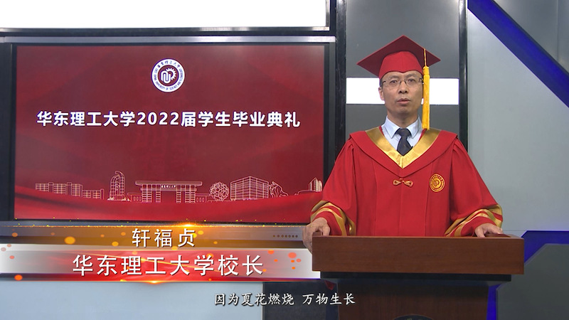 最后,校党委副书记沈海涛向全体毕业生发出线下毕业季邀请函,邀请大家在今后的任何一个毕业季,回到华理,登上舞台,拨穗拍照。今年是华理建校70周年,届时欢迎大家相约华理,欢聚一堂,共庆华诞,共谱华章!