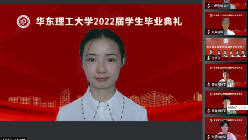 在线观看了由毕业生自己制作的本研毕业纪念视频后,国贸(运)180班俞程皓同学代表本科毕业生发言,深情表达了对大学时光的眷恋,“始于盛夏的故事,也将终于仲夏。习以为常的曾经,却是无法再触摸的永远”,表达了对母校和老师的感恩之情和对对同学们的祝愿。