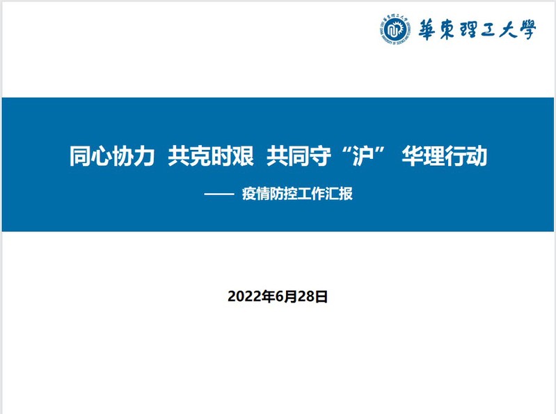 最后,徐文方向全体教职工做了题为“同心协力,共克时艰,共同守“沪”,华理行动”的疫情防控工作汇报,从学校的总体情况,学院的基本情况和学院的防疫工作三个方面进行了详细、全面的工作总结,并对全体教工在过去的几个月里守望相助,共克时艰,在极其艰难的情况下顺利完成了本学期的教学、科研、管理等各项工作任务表示最诚挚的感谢。她强调,疫情期间学院坚持党委会、党政联席会不断线,党委中心组学习、教职工理论学习、党支部组织生活不断线,成立疫情防控工作专班专题研究部署疫情防控各项工作,圆满的完成了上级党委交给的各项工作任务。把党建工作与业务工作深度融合,发挥党建的引领和保障作用,以高质量的党建,引领高质量的发展一直是学院追求的工作目标。学院将继续扎实推进党的建设工作,推动学院中心工作,以更加优异的成绩,为建校70周年献礼,喜迎党的二十大胜利召开。