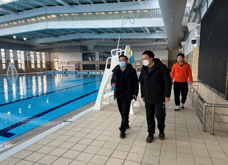 在奉贤校区游泳馆和体育馆,场馆管理团队重点查看了场馆设施、消防系统、安全出口等运行情况,听取物业管理单位安全工作相关汇报,认真细致开展各项检查。