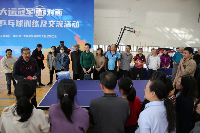 徐文方对参与活动的领导和老师表示热烈的欢迎。她在致辞中表示,在今年举行的第31届成都世界大学生运动会上,由华理组队的中国乒乓球队勇夺7个项目的全部金牌。30余年来,华理乒乓球高水平运动队代表中国大学生征战于世界赛场,在国际赛事中斩获金牌百余枚,培养了一大批优秀运动员,已成为华理体育的一张亮丽名片。在赛场上屡获殊荣的同时,体育学院积极回应师生关切,让师生共享优质乒乓资源,推动校园体育文化建设。希望爱乒乓、爱体育的老师们,和学生们一起在体育锻炼中享受乐趣、增强体质、健全人格、锤炼意志,培养更多更优秀的德智体美劳全面发展的社会主义建设者和接班人。