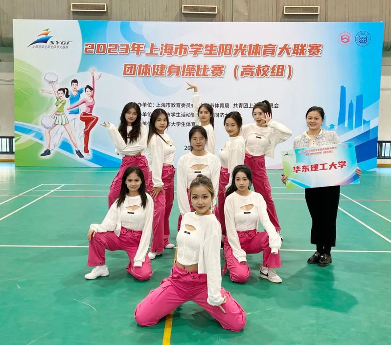 上海市大学生阳光联赛——团体健身操比赛,闫姝璇老师带队,司欣怡、刘玥灵、周金睿、陈尔雅、陈慧霞、瓦雨丘、罗煜洁、古丽米热·艾则孜、姜妤,获得一等奖。