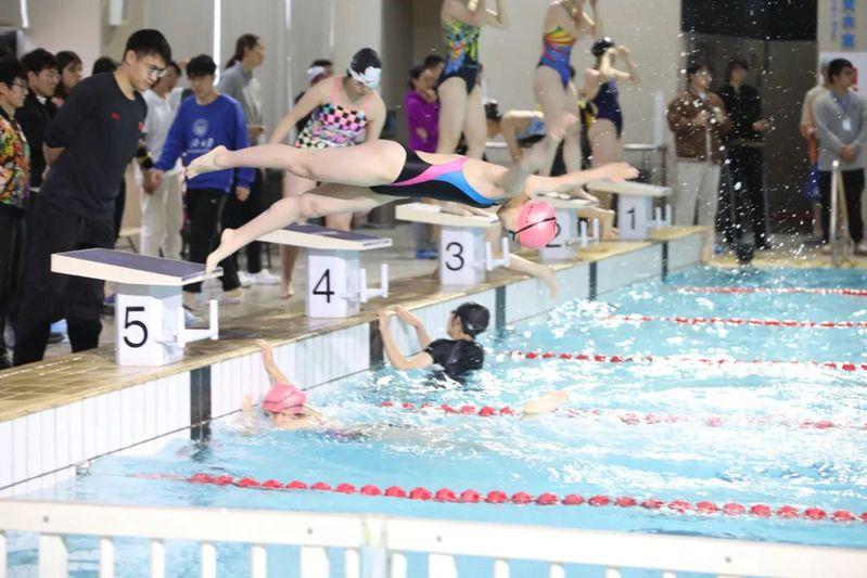 上海市大学生阳光联赛——团体游泳比赛,朱鹏老师带队,获得混合接力第四名,女子6X25接力第六名,男子8X50接力第七名,团体总分二等奖。