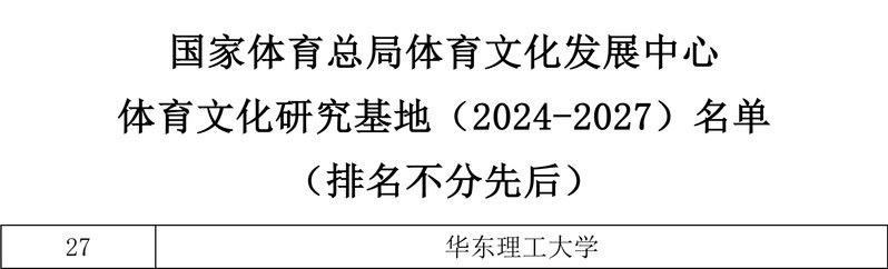 近日,国家体育总局公布了总局体育文化发展中心体育文化研究基地(2024-2027)名单,包括我校在内的89家单位经自主申报、组织推荐、资格审查、现场答辩、专家评审、社会公示,最终成功入选。
