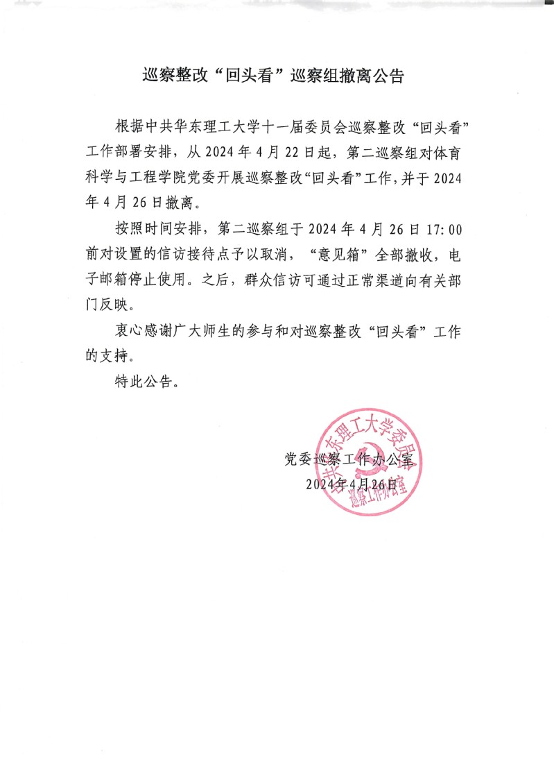巡察整改“回头看”巡察组撤离公告