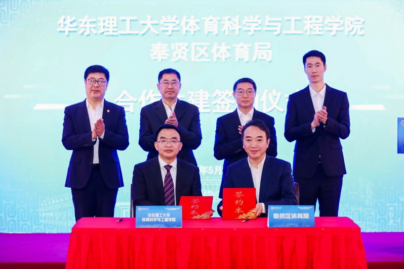 奉贤区体育局党组成员、副局长杨洁兵,三级调研员冯卫标,yl6809永利YL集团党委副书记吴婷,副院长韩骏,各系所中心负责人及教师代表参加了签约仪式。