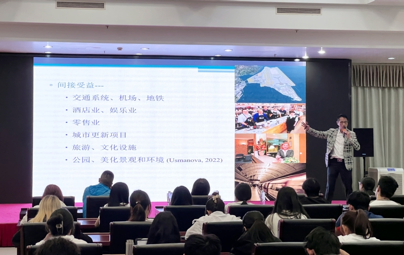 刘教授运用详实的数据和生动的案例,阐述了体育产业与体育旅游的现状、面临的挑战与机遇以及未来前景。他向师生介绍了全球体育产业的发展趋势,指出全球体育产业近年来表现出从业人数增加、科技进步、电子竞技兴起、体育营销和赞助的扩展等多方面的变化。并以体育旅游为例,分析论述我国体育产业发展的历程和现状,阐述了体育旅游、体育产业发展对社会经济发展、公众健康福祉、国际文化交流等方面的影响,并结合北京奥运会、北京冬奥会、香港七人制橄榄球赛等全球大型体育赛事举办的实例分析,用数据向大家展示了体育旅游在促进体育产业发展中的巨大潜力。他指出,体育旅游与体育产业的发展需要多方配合,从战略规划、制度保障、人才培养到产业链完善等多个层面着手,需要在经济、社会和环境三个层面实现平衡。才能实现体育旅游的可持续高质量发展。