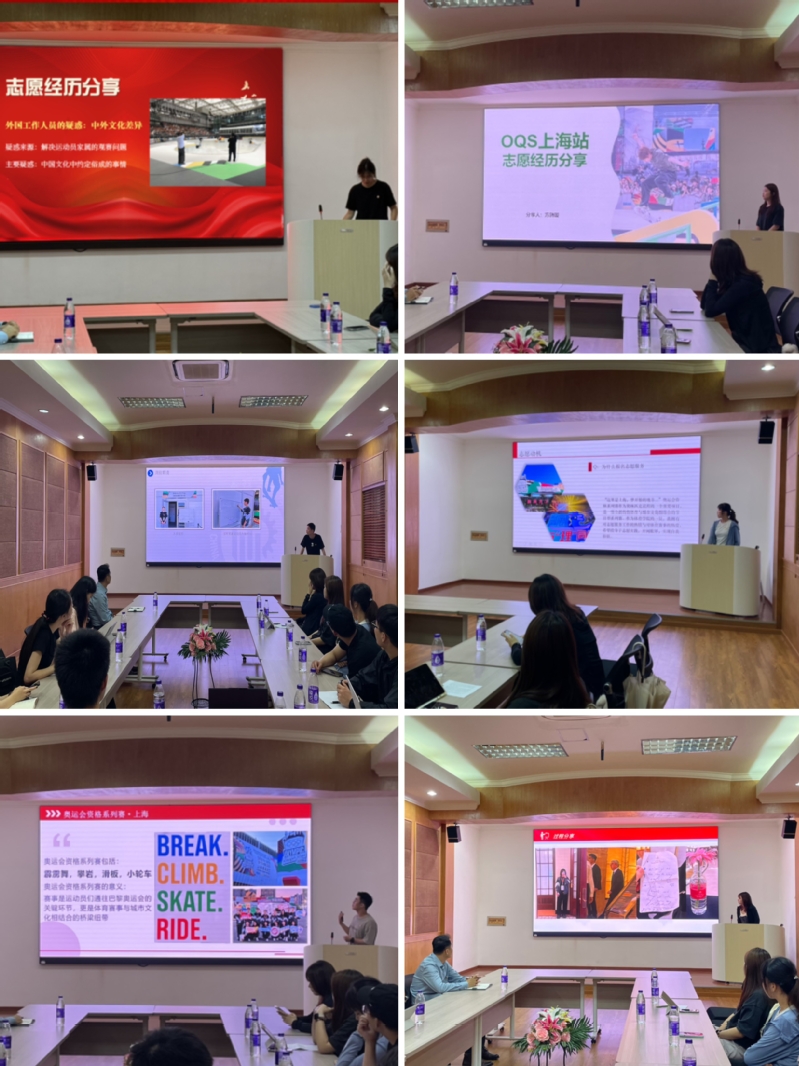 活动邀请学生党支部6名参加奥运资格系列赛上海站志愿服务的学生党员进行经历分享。朱毅雯从志愿服务与文化交流的角度分享对于如何讲好中国故事的思考;樊思璟通过视角转换对比赛事志愿者与组织者的身份异同点;方旖璇以热爱与兴趣为题分享对于党员职责与责任的思考;张晨翔以志愿服务的真实故事为引呼吁大家拥抱新兴体育项目;朱晨曦通过分享与运动员之间的故事展现奥资赛工作的趣味;张婧晨结合运动专项分享参与大型体育赛事许多“人生第一次”的志愿感悟。
