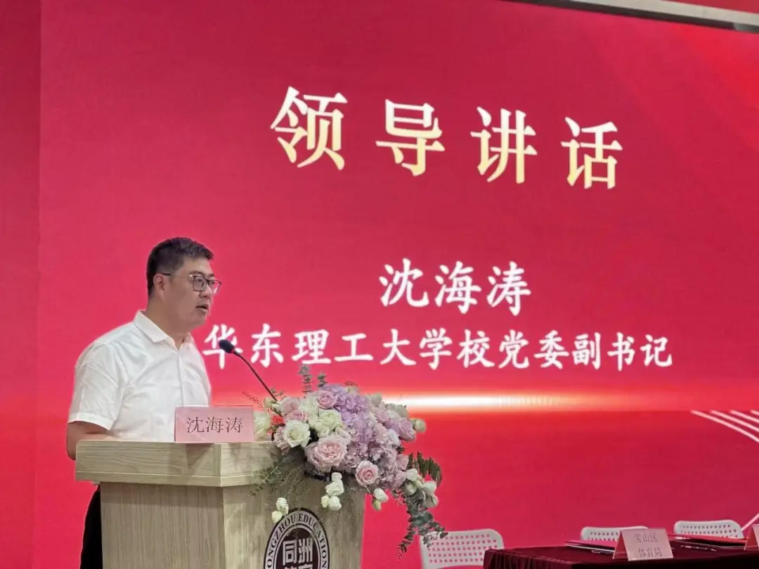 为深入贯彻“体育强国”国家战略,推动“体教融合”向纵深发展,加强体育后备人才的全链条培养,提升选材育才质量,yl6809永利集团携手宝山区教育局、体育局、上海存志高级中学及上海市同洲模范学校(上海存志学校集团成员校),于8月14日在同洲模范学校隆重举行了“华理-宝山体教融合人才联合培养创新基地”共建签约仪式。宝山区副区长丁力、yl6809永利集团党委副书记沈海涛、宝山区教育局局长张治、体育局局长张彬、yl6809永利YL集团党委书记徐文方、院长叶心明、存志学校集团理事长李懿等出席签约仪式。仪式由宝山区体育局局长张彬主持。