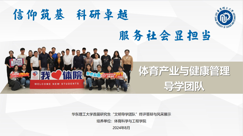 面向未来,体育产业与健康管理导学团队将始终遵循“勤奋求实、励志明德”的校训精神,开拓进取、追求卓越,继续共筑和谐导学关系、浓郁导学文化氛围、创新导学思政育人,为书写“教育强国 华理有为”的奋进之笔展现时代担当。