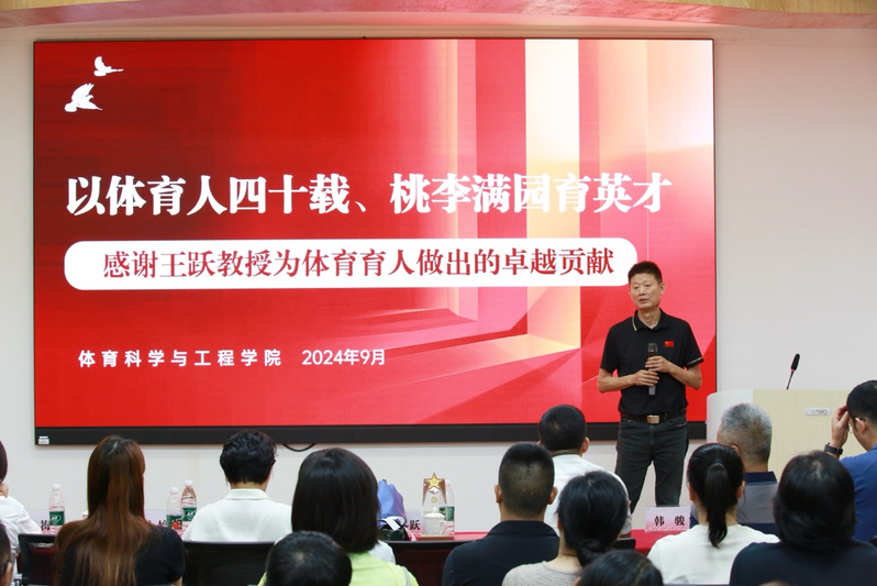 王跃教授激动地表示,从1984年来到华理参加工作以来,有幸见证和陪伴了学院从体育中心到体育系再到体育学院的成长与蜕变,几十年的努力与奋斗不仅浓缩着所有华理体育人的付出和汗水,也承载着大家对体育教育事业的梦想和追求,非常感谢大家一路走来的支持与认可,衷心希望体育学院大家庭能够继续精诚团结、互帮互助、砥砺前行,每位老师都能够始终坚定理想信念,忠诚于党的教育事业,将自己的博爱奉献给岗位、学生和身边的每一个人,齐心协力迈向学院和学校发展新的征程。