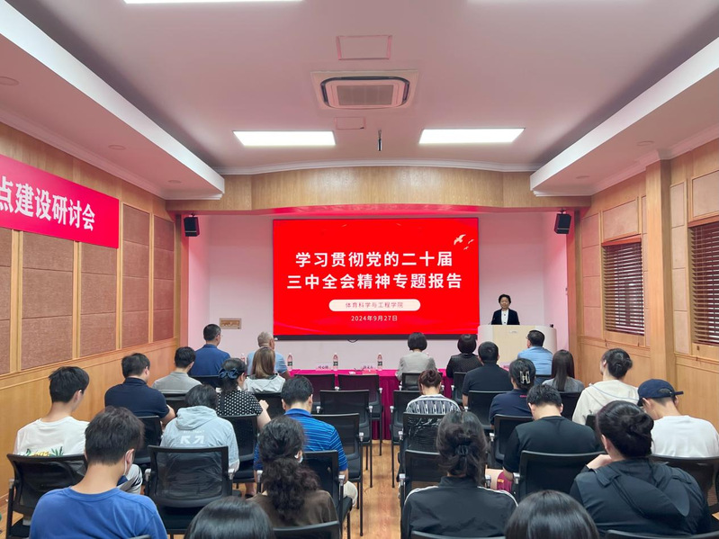 徐文方在主持讲话中指出,党的二十届三中全会擘画了进一步全面深化改革、推进中国式现代化的宏伟蓝图。学习好贯彻好党的二十届三中全会精神是当前和今后一个时期全党全国的一项重大政治任务。在全面深化改革的大潮中,法治建设是实现教育强国、人才强国和体育强国战略目标的重要支撑。建设中国特色社会主义法治体系,是习近平法治思想的重要内容,是全面推进依法治国的总抓手,体育法治建设被赋予了新的历史定位和时代使命。全体师生要深入学习贯彻落实党的二十届三中全会精神,把思想统一到党的二十届三中全会精神上来,把力量凝聚到加快建设教育强国和体育强国的生动实践上来。