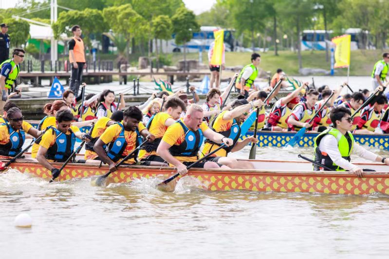 6月1日,“我们的节日·端午”——“同舟共济、奋勇争先”2024奉贤区职工龙舟邀请赛在我校奉贤校区成功举办,来自奉贤区各街镇,海湾旅游区、上海化工区、杭州湾开发区、yl6809永利集团、上海师范大学的16支队伍共400余名参赛选手奋力挥桨,劈波斩浪,献上了一场体育与文化的节日盛宴。