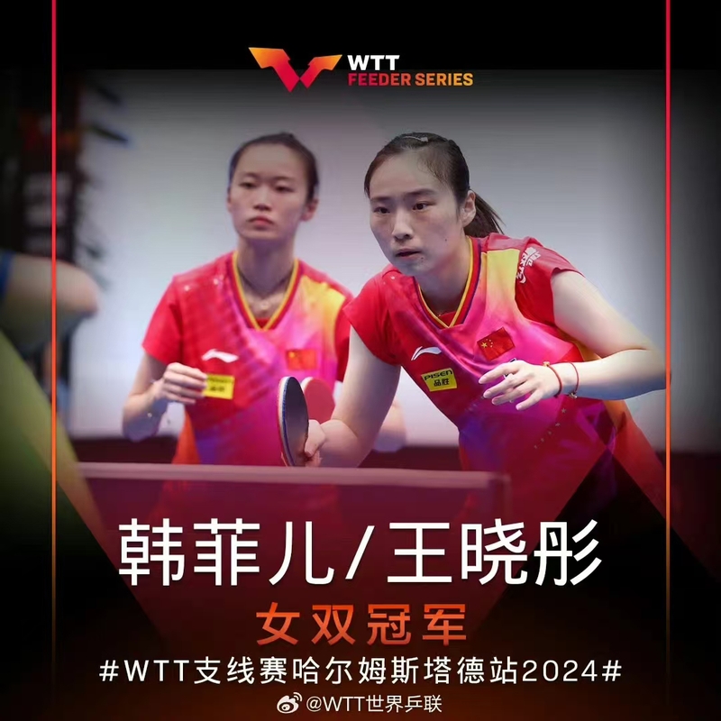 9月21日晚,世界乒联支线赛哈尔姆斯塔德站比赛在瑞典落下帷幕。学院2021届校友薛飞(国贸运170班)、2021级本科生王晓彤(国贸运210班)分获男女单打冠军!2023级本科生韩菲儿(国贸运230班)与王晓彤搭档再获女双冠军!