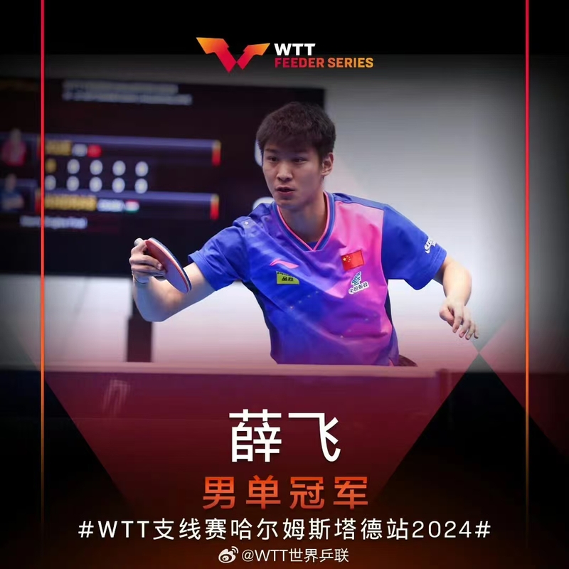 本次男单比赛方面,国乒共派出10名队员参赛,华理学子薛飞参赛。半决赛中,薛飞以3比1击败了东道主选手、正胶打法的法尔克,晋级决赛。在决赛中,薛飞捍卫了国乒荣誉,他以12:10拿下第一局后,3比0锁定冠军,收获赛季单打第2冠(均为支线),世排上升至76位。