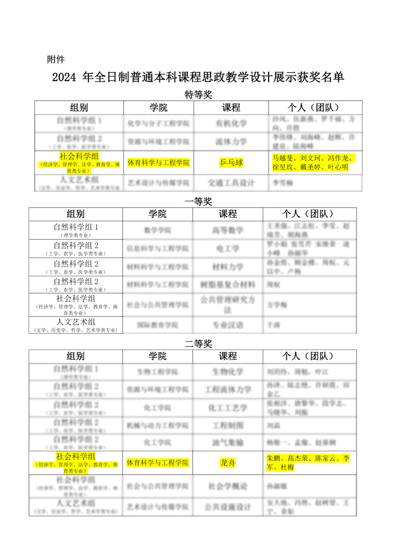 近日,学校公布 2024 年全日制普通本科课程思政教学设计展示获奖名单。经教师申报、学院推荐、专家材料评审及现场打分,体育学院共有2门课程思政教学设计展示获奖。