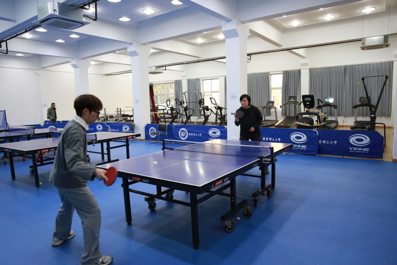 会后交流环节,与会校友们畅谈过去时光,共叙青春往事,共同回忆在华理校园的求学点滴与成长历程,彼此间的真挚情谊在交流中愈加深厚。体育学院04级校友余静微与24级在读研究生郑洪运展开乒乓切磋,这场跨越20年的同台较量,是华理体院两代学子在同一平台上的深情对话,象征着华理乒乓文化薪火相传、生生不息的传承与发展。