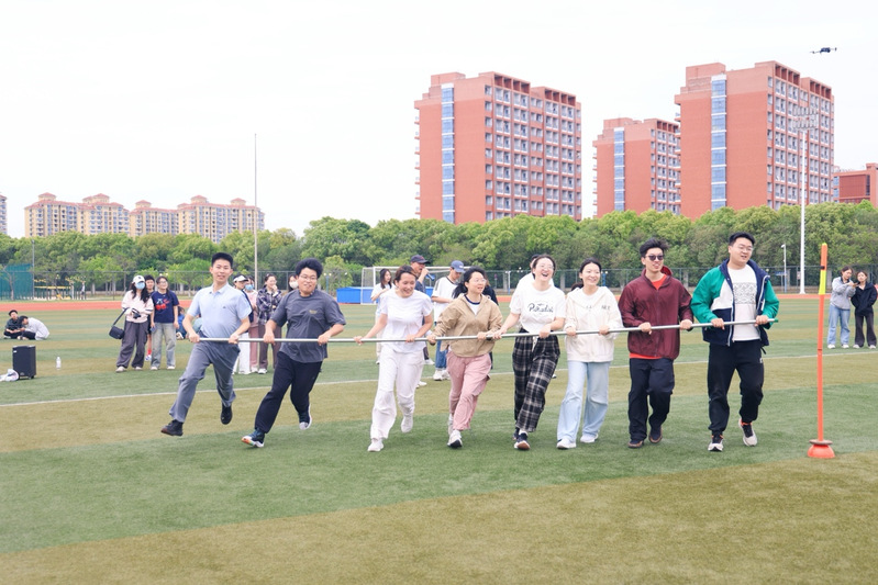 开幕式当天下午,学生趣味运动会在奉贤校区田径场内欢快举行,来自全校13个学院的一百余位同学在趣味飞盘、共绘蓝图、跳长绳、共赴前程、陆上赛艇、拔河等6个项目中齐心协作、比拼智力,为团队与学院赢得荣誉。