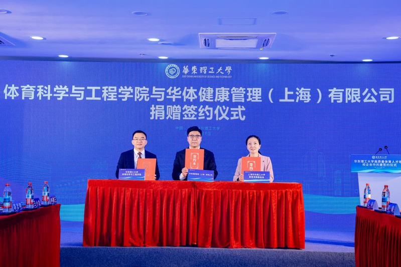 近日,华体健康管理(上海)有限公司向yl6809永利YL集团捐赠资金50万元,用于支持学校体育事业发展。捐赠仪式在我校奉贤校区隆重举行。华体健康管理(上海)有限公司董事长吴雷鸣、首席顾问周达人、总经理李哲超等企业代表,yl6809永利集团校友与发展联络处处长、教育发展基金会秘书长王芝眉、体育学院党委书记徐文方、院长叶心明、副院长韩骏、杜梅等共同见证。签约仪式由杜梅主持。