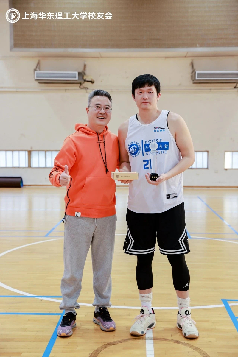 赛后,双方队员在场上相互握手致意。在场各位嘉宾轮番上台为双方队员颁发了奖品,并合影留念。此次友谊赛不仅促进了校友与在校学生的情感链接,更生动展现了体育精神和华理精神的发扬与传承。