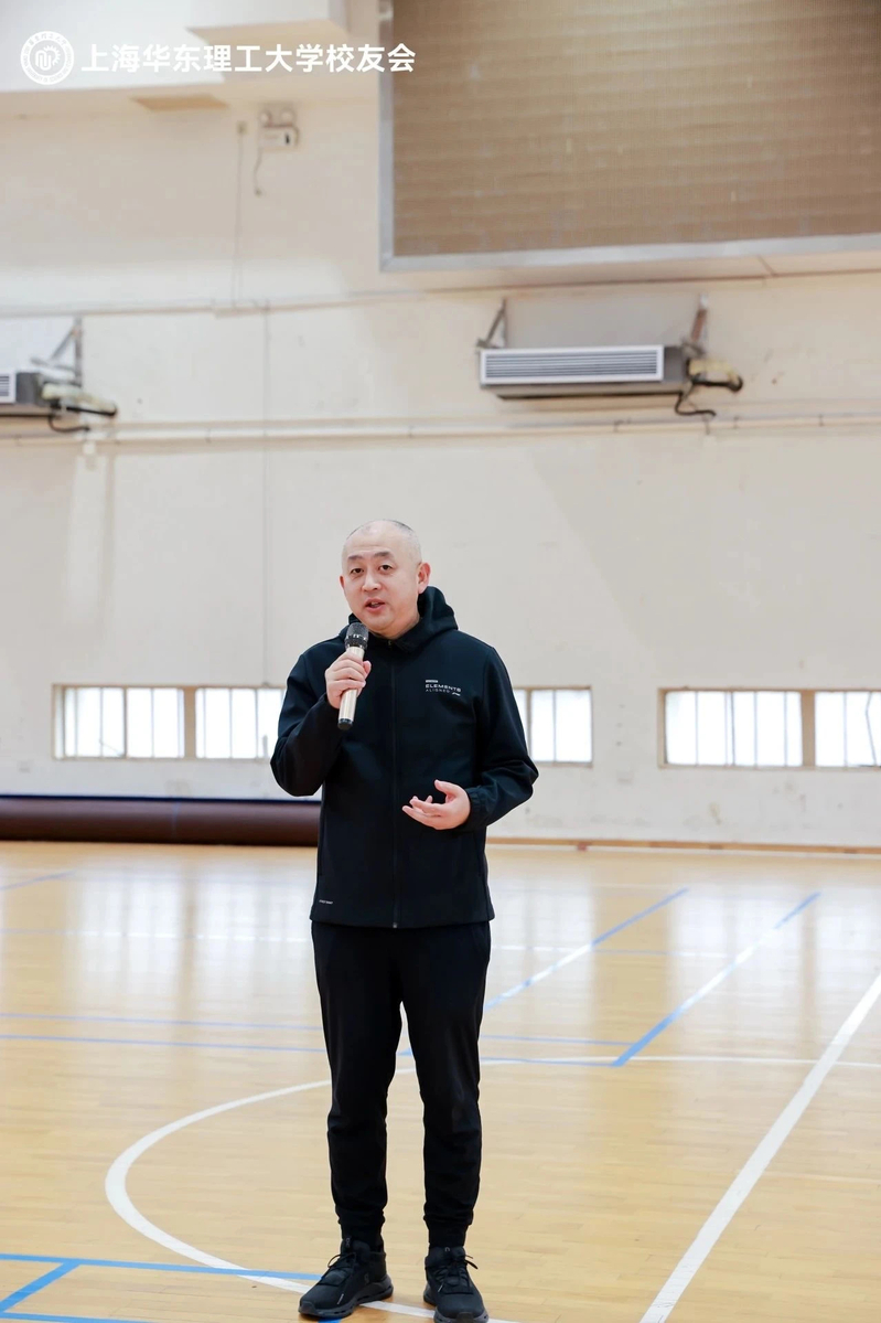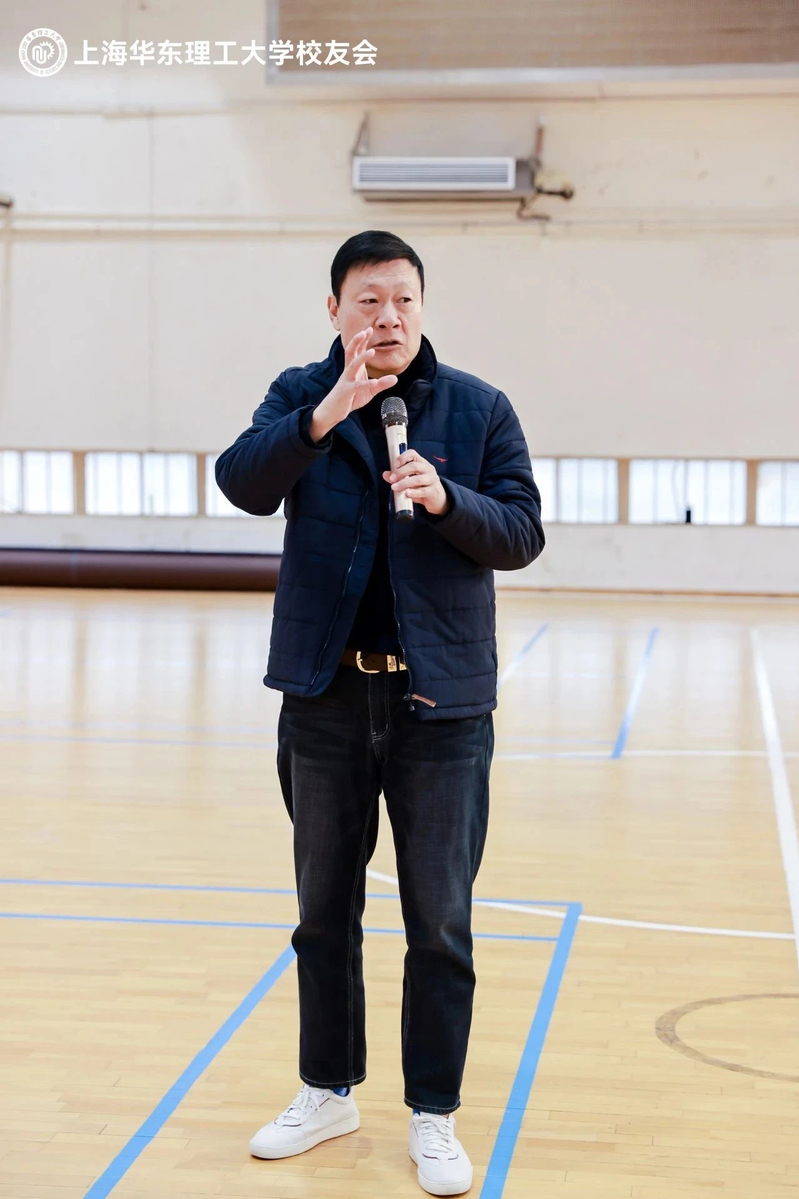 近日,华理上海校友会篮球代表队与华理男篮代表队双喜临门,分别在高校校友会篮球赛与上海市学生运动会篮球比赛中夺得桂冠。为庆祝这一佳绩,弘扬体育精神,促进校友与在校生的互动交流,两队于1月11日在徐汇校区体育馆进行了一场别开生面的篮球友谊赛,吸引了众多师生和校友参与。 校党委副书记沈海涛出席活动并讲话。崇明区委常委、宣传部部长陈立俊,久事体育原总经理蒋育生,CBA上海男篮总教练李秋平,上海加冷松芝汽车空调股份有限公司总裁、上海校友会副理事长兼篮球俱乐部会长纪安康,正泰集团网络科技公司董事长特助郭志鹏,国浩律师(上海)事务所合伙人黄超,华理资产经营公司董事长姚磊,体育与工程学院党委书记徐文方,副院长韩骏等嘉宾受邀前来观赛。 沈海涛在讲话中首先向各位师生校友和关心支持母校发展的嘉宾表示感谢。他回顾了近年来华理学子在各大体育赛事中取得的卓越成就,运动健儿们在赛场上的拼搏身影充分体现了“勤奋求实,励志明德”的校训精神。同时他对校友篮球队的杰出成绩和突出贡献表示赞许。他提出,学校坚持立德树人根本任务,培养了一代又一代华理人在各行各业中发光发热,希望在校学生能向广大校友学习,坚定信念,强身健体,为教育强国建设作出华理人的贡献。 比赛在华理体育馆准时拉开帷幕。双方队员身着统一队服,精神抖擞,在观众的欢呼声中走上赛场。纪安康校友为比赛致开幕辞并开球。比赛结束后,李秋平指导以篮球专业角度为本次比赛做了点评,各位校友师生都受益匪浅。