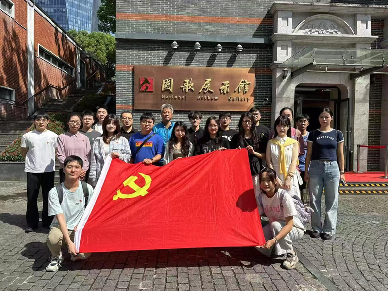 师生党员还参观了上海图书馆、云南省博物馆、田汉基金会等单位主办的“大国之声·永远的国歌——纪念《义勇军进行曲》诞生90周年主题特展”。特展通过丰富的图文史料和实物展品,进一步展现了国歌在不同历史时期所发挥的凝聚人心、鼓舞斗志的巨大作用。大家拿起电话装置聆听首版、粤语版、管弦乐版等九个版本《义勇军进行曲》的铿锵旋律,深刻感受国歌的全球传播轨迹。