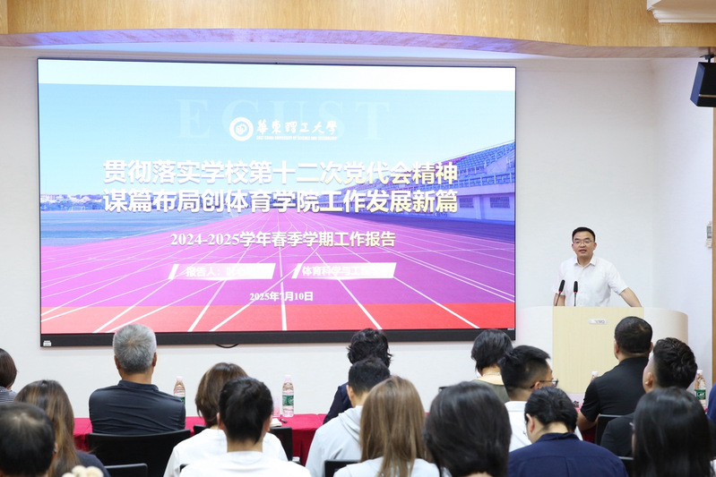 近日,体育学院在徐汇校区体育馆104会议室召开2025年春季学期工作总结会暨教职工理论学习会,总结本学期各项工作并进行专题学习。学院党政领导班子成员和全体教职工参加会议,会议由学院党委副书记、纪委书记吴婷主持。