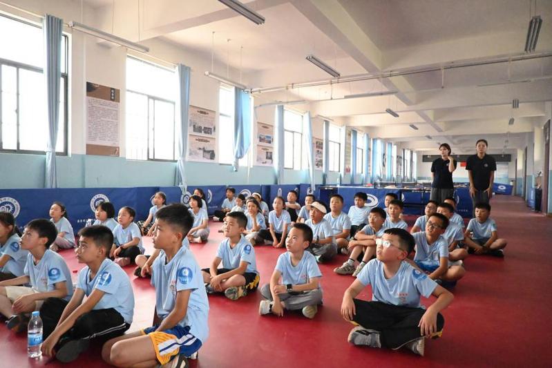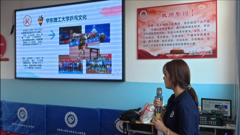 实践团成员们围绕“乒乓球运动的全球历史画卷”、“中国乒乓球的辉煌崛起之路”以及“华理乒乓队伍的建设历程与卓越风采”三大核心主题,为孩子们奉上了一堂生动精彩、引人入胜的体育文化课,让孩子们在聆听中真切感受到国球魅力的精髓所在。