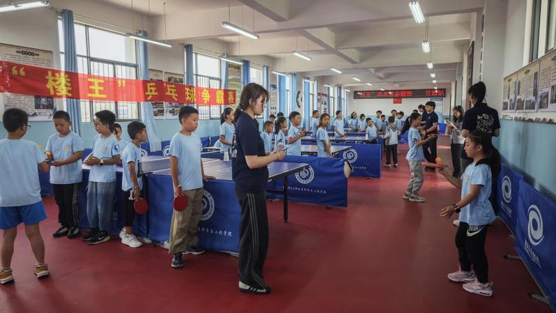 在乒乓球系列教学中,实践团系统传授了握拍姿势、脚步站位、正手攻球与反手拨球等核心技能。帮助同学们掌握了握拍方式;并通过动作分解、分组指导等方式,学习正反手技术要领。实践团还组织了“楼王”乒乓球争霸赛——寻甸站的比赛,立足学生特点,设计了“颠球马拉松”、“发球进圈赛”和“乒乓保龄球”三个妙趣横生的项目,同学们热情高涨,踊跃参与。实践团为每一位参赛小选手都送上了珍贵的礼物——华理学子、乒乓球大学生世界冠军王晓彤的亲笔签名球,点燃了大家的运动热情。